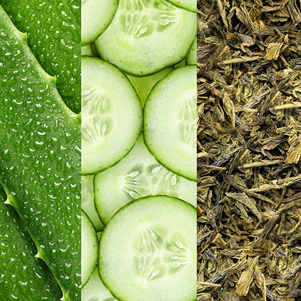 Water (Aqua/Eau), Aloe Barbadensis Leaf Juice, Propylene Glycol, Mentha Piperita (Peppermint) Leaf Water, Cucumis Sativus (Cucumber) Fruit Water, Propanediol, Polysorbate 20, Camellia Sinensis Leaf Extract, Potassium Sorbate, Benzophenone-4, Ethylhexylglycerin, Fragrance (Parfum), Citric Acid, Sodium Benzoate, Cucumis Sativus (Cucumber) Extract, Fucus Vesiculosus (Bladderwrack) Extract, Yellow 5 (CI 19140), Blue 1 (CI 42090), Hexyl Cinnamal, Limonene, Linalool.