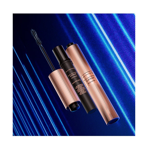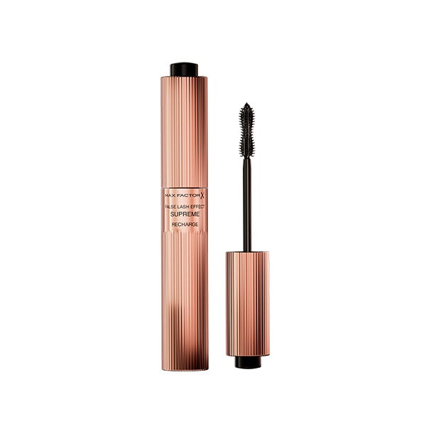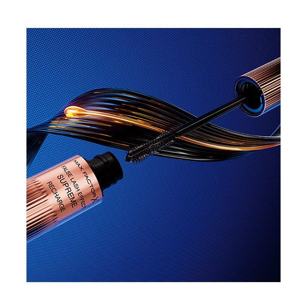 Descubra nossa solução mais suprema para cílios, nossa primeira máscara de cílios recarregável, Max Factor False Lash Effect Supreme Recharge. Aumenta 7X mais volume instantaneamente, e além disso cuida dos seus cílios deixando-os visivelmente mais fortes, cheios e saudáveis em apenas 4 semanas. A máscara Supreme Recharge conta com uma escova modeladora de cílios com cerdas únicas que cobrem cada cílio de ponta a ponta para um efeito instantâneo de cílios postiços, com impacto total e volume completo. Sua fórmula infundida com sérum de Queratina oferece um tratamento prolongado para os cílios, fortalecendo-os semana a semana. Conheça seu design inovador de alta tecnologia, de fácil e prática recarga em apenas 1 minuto, para um uso infinito. Recarregue, reabasteça, repita!