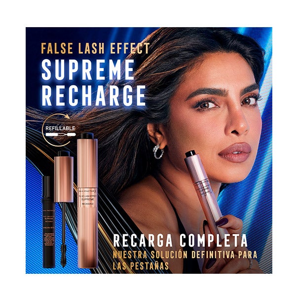 Descubra Max Factor False Lash Effect Supreme Recharge REFILL, nossa primeira recarga para esta inovadora máscara de cílios que tem tudo. Aumenta instantaneamente 7 vezes o volume, com o benefício adicional de cílios com aparência mais saudável em apenas 4 semanas. Aumenta 7X mais volume instantaneamente, e além disso cuida dos seus cílios, deixando-os visivelmente mais fortes, cheios e saudáveis em apenas 4 semanas. A máscara Supreme Recharge possui um pincel modelador de cílios com cerdas únicas que cobrem cada cílio do início ao fim para um efeito instantâneo de cílios postiços, com impacto total e volume máximo. Sua fórmula infundida com sérum de Queratina proporciona um tratamento prolongado para os cílios, fortalecendo-os semana a semana.