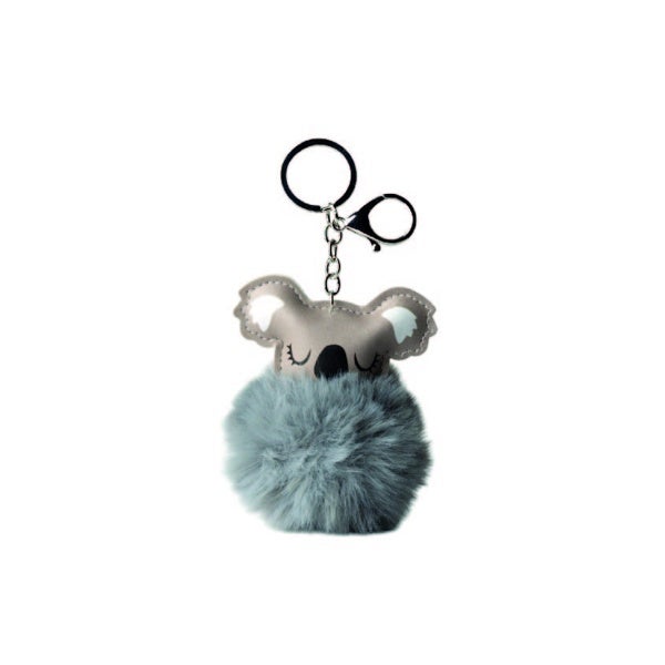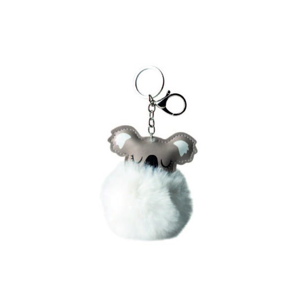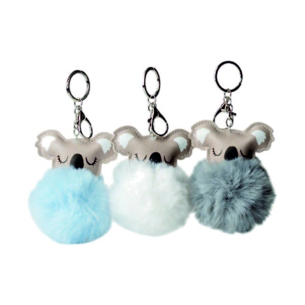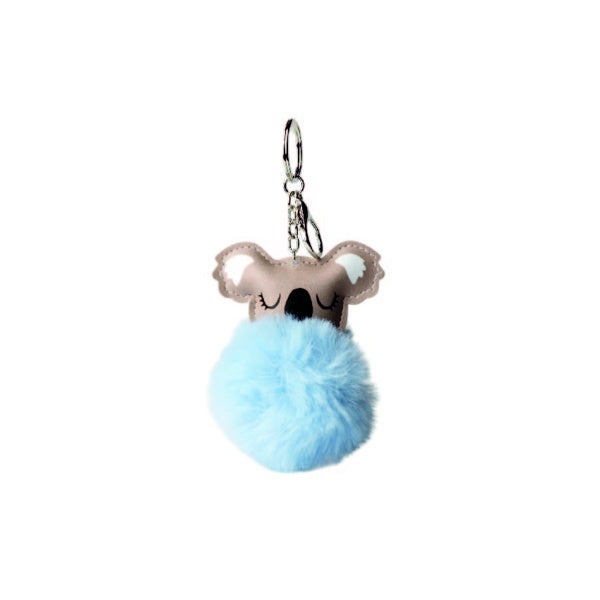 Chaveiro pompom coala. Existem 3 cores: Azul nuvem, branco e cinza.