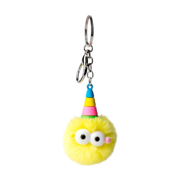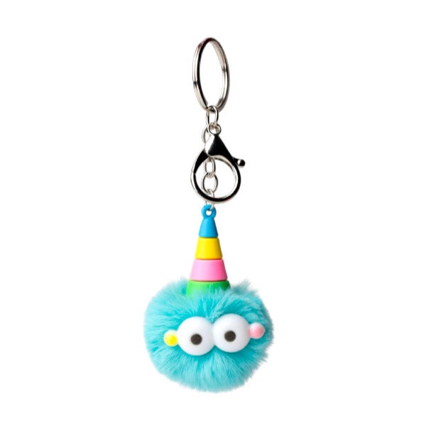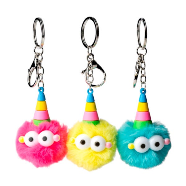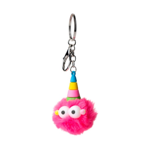 Chaveiro pompom crazy. Existem 3 cores: Rosa fúcsia, amarelo e menta/azul.