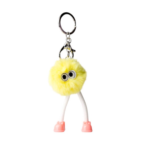 Chaveiro pompom Patinhas. Existem 3 cores: Rosa, Amarelo pastel e lilás.