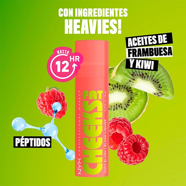 Sua fórmula é enriquecida com framboesa e óleo de kiwi, ingredientes que mantêm as bochechas hidratadas durante todo o dia.