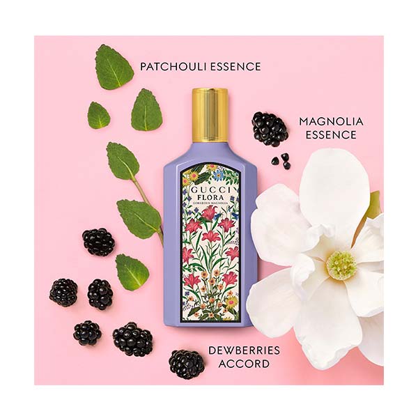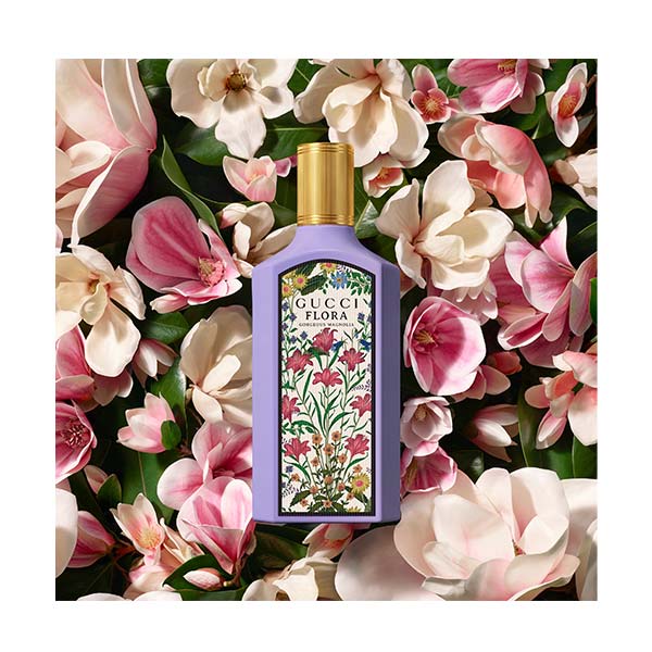 O perfume para mulher Gucci Flora Gorgeous Magnolia, que convida a dar asas às suas fantasias com segurança e confiança, é a terceira fragrância Gucci que compõe a coleção #FloraFantasy.