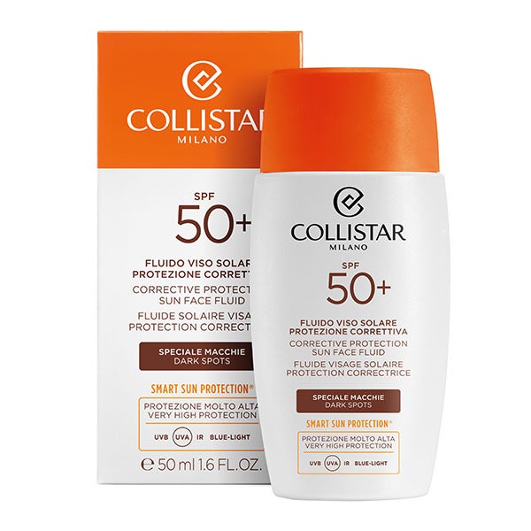 Fluido facial solar com fator de proteção muito alto, específico para prevenir e tratar manchas solares e hiperpigmentação.