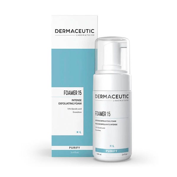 Limpeza e esfoliante 2 em 1 de textura líquida que se transforma em uma suave mousse ao pressionar o difusor. Purifica a pele eliminando as impurezas e as células mortas da pele. Foamer 15 está indicado para pele opaca, sem luminosidade, com manchas de hiperpigmentação, textura irregular, poros dilatados, acne e imperfeições.