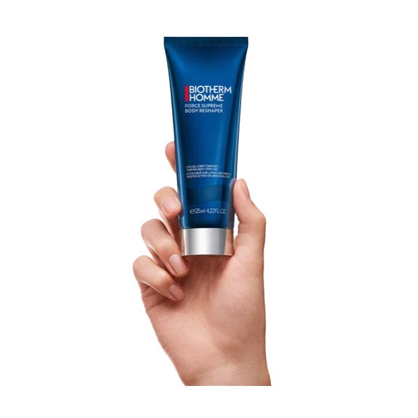 Biotherm Homme Force Supreme Body Reshaper é um crio-gel reafirmante corporal cuja fórmula patenteada rica em Biotech Plankton, Creatina e Cafeína consegue reduzir a cintura e definir o abdômen do corpo do homem. Sua tecnologia consegue um potente efeito frio que unido aos ativos antes mencionados alcança uma sinergia que redefine a silhueta masculina. Recomendamos aplicar diariamente com massagens circulares sobre a pele limpa e seca.