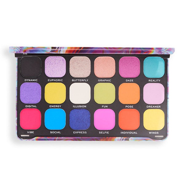 Esta preciosa paleta contém 18 sombras de olhos com acabamento mate, metálico e glitter.