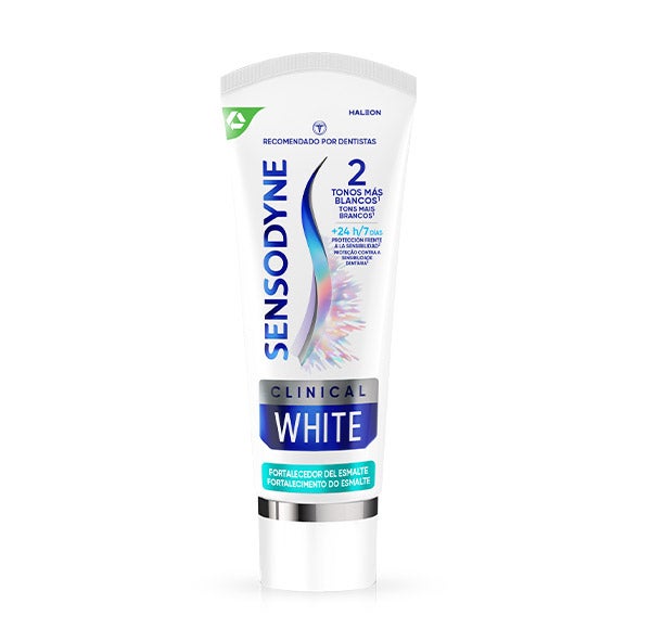 Sensodyne Clinical White Enamel proporciona um branqueamento clinicamente comprovado. Desenhado especialmente para consumidores que buscam tratar a sensibilidade dental, aumentar a proteção do esmalte e obter dois tons mais brancos. Não contém peróxido de hidrogênio. Apropriada para uso diário. Sabor mentolado que produz uma sensação na sua boca de limpeza e frescor.