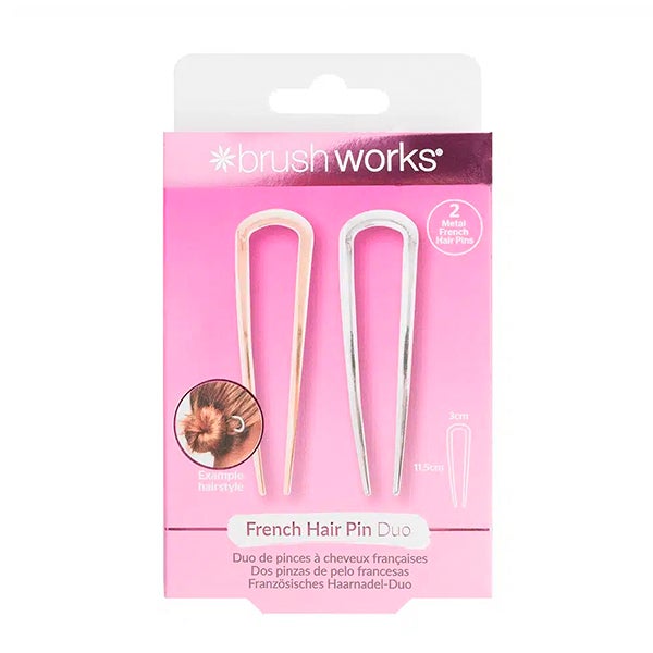 Melhore seu penteado com o duo de grampos franceses da Brushworks: a solução chique e simples para criar penteados espetaculares em segundos! Seja para um coque casual ou um coque elegante, esses grampos facilitam o penteado. Basta girar, prender e seu visual ficará perfeito instantaneamente. Os grampos têm um design minimalista e fino que oferece uma fixação segura.