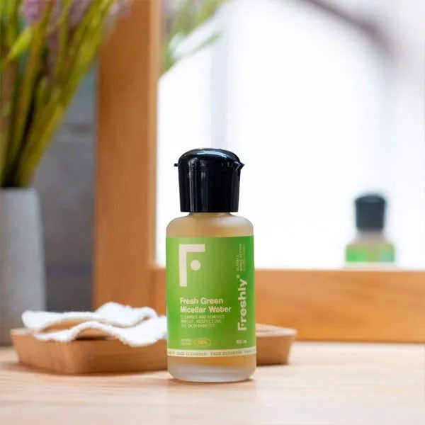 A Água Micelar Fresh Green com micelas naturais remove todas as impurezas e vestígios de maquiagem de forma suave, respeitando a barreira dérmica.