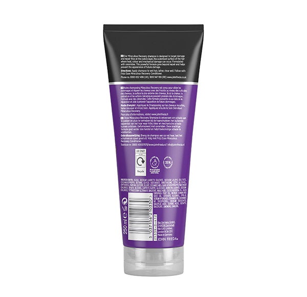 Recupere seu cabelo e diga adeus ao frizz! O Shampoo Frizz Ease Miraculous Recovery com ceramidas ajuda a reparar e reduzir o frizz, deixando o cabelo visivelmente mais suave desde o primeiro uso. Além disso, protege o cabelo contra futuros danos. A linha Miraculous Recovery contém uma fórmula exclusiva com ceramidas que repara as cutículas do cabelo seco e danificado, e reduz o frizz em 86% em um único uso.