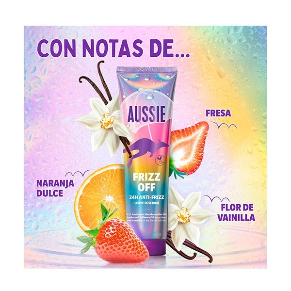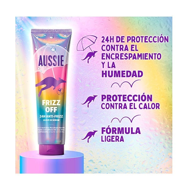 Pronto para dar adeus ao frizz?! Diga olá ao cabelo macio com o Frizz Off 24H Anti-Frizz Leave-In Serum da Aussie. Enriquecido com óleo de noz de macadâmia australiana, jojoba e óleos de cártamo, esta fórmula leve retém a umidade, protege contra o calor e combate a umidade durante 24 horas. Nada de mais frizz, fios soltos ou pesados, apenas cabelo macio, brilhante e com ótimo cheiro, mesmo nos dias mais chuvosos.