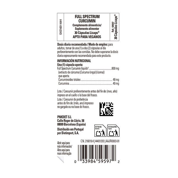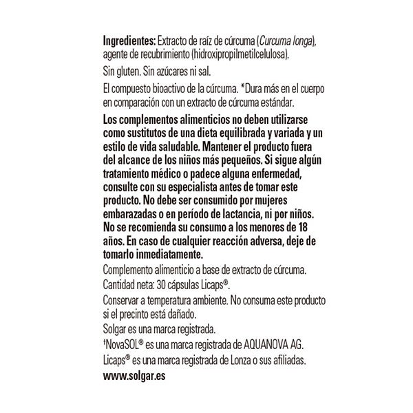 Cúrcuma de espectro completo, agente de recubrimiento: hidroxipropilmetilcelulose.