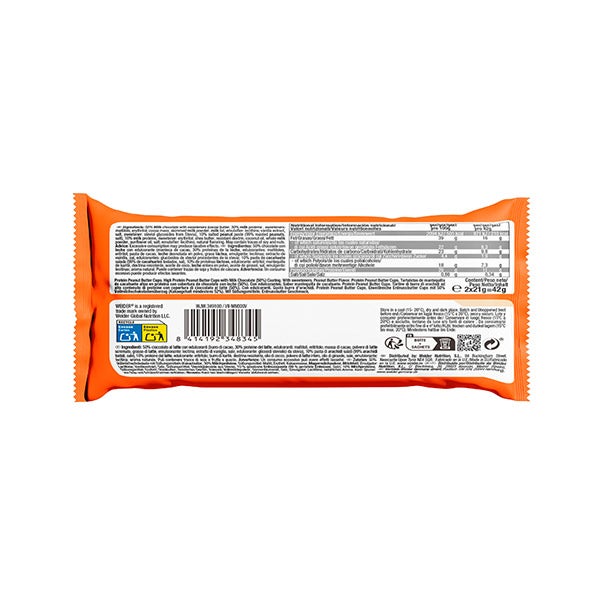 50% chocolate con leche con edulcorantes (manteca de cacao, 30% proteínas de la leche, edulcorantes: maltitol, eritritol; pasta de cacao, leche desnatada en polvo, grasa láctea, emulgente: lecitinas; extracto de vainilla, sal, edulcorante: glucósidos de steviol procedentes de la stevia), 10% pasta de cacahuete salada (99% de cacahuetes tostados, sal), 10% de proteínas lácteas, edulcorante: eritritol; mantequilla de karité, dextrina resistente, aceite de coco, leche entera en polvo, aceite de girasol, sal, emulgente: lecitinas; aroma natural.