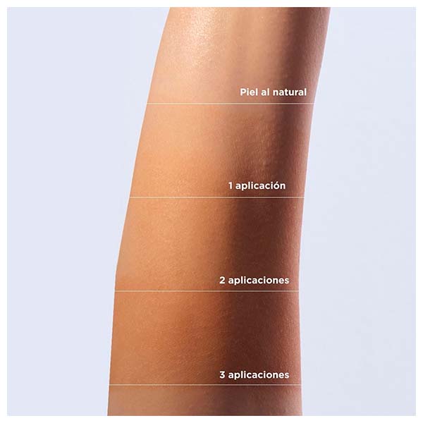 O bronzeado desenvolve-se progressivamente e pode ser intensificado com aplicações sucessivas, para um resultado sob medida conforme o tom desejado.