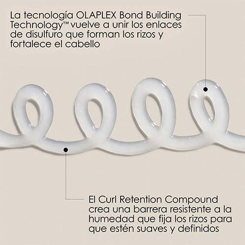 La tecnología™ patentada de construcción de enlaces OLAPLEX fortalece los enlaces de disulfuro, responsables de la forma natural de los rizos, la estructura y la fuerza del cabello, para obtener rizos visiblemente más saludables y una mejor definición.