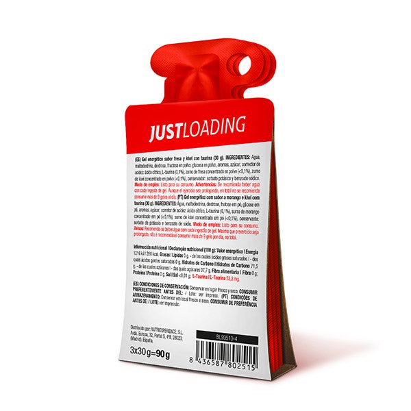 Gel energético morango e kiwi: O gel energético morango e kiwi combina hidratos de carbono com taurina, que fornecem energia durante o treino e retardam o aparecimento da fadiga.