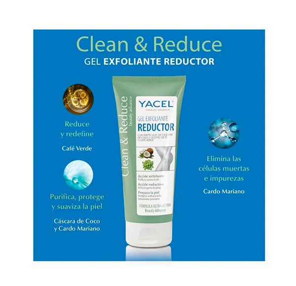 Renova a pele eliminando suavemente as células mortas e impurezas; combate as gorduras acumuladas graças à sua ação redutora; e por último, prepara a pele multiplicando a absorção e a eficácia dos tratamentos Yacel.