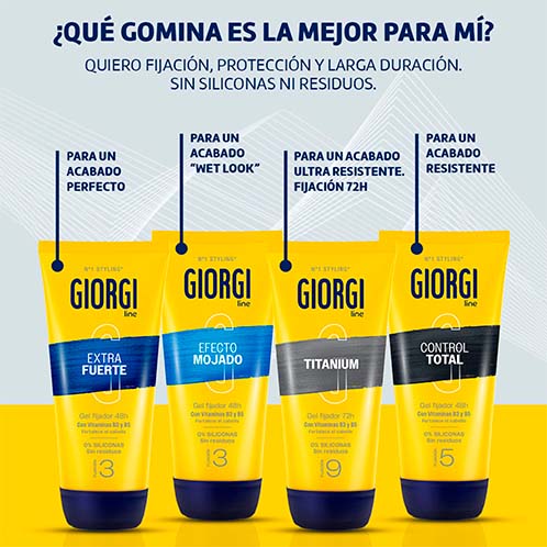 Prueba la Gomina Efecto Mojado de Giorgi que te proporciona un acabado de aspecto brillante y efecto mojado de larga duración. Es de uso frecuente.