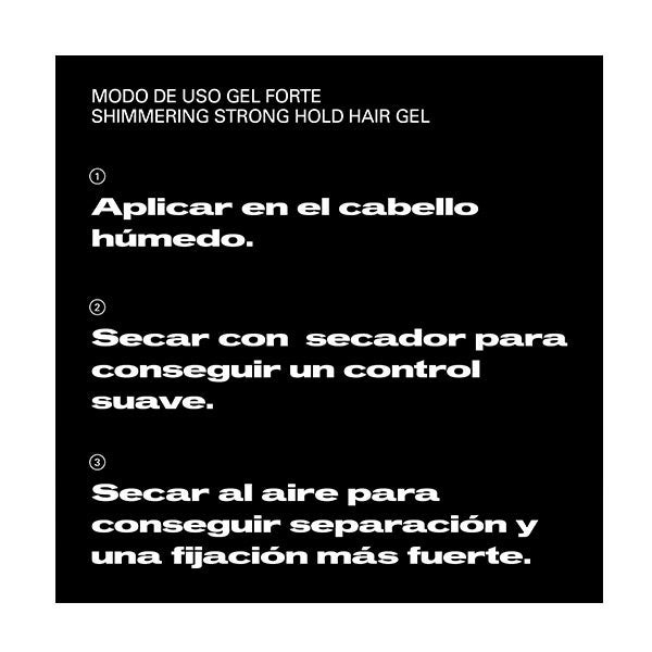 Um gel de penteado de fixação forte e brilhante sem deixar sensação rígida nem pegajosa.