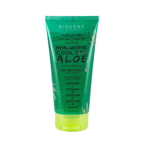 Gel super calmante para rosto e corpo elaborado com 99,6% de aloe vera orgânica e ácido hialurônico hidratante que refresca, preenche e hidrata instantaneamente a pele seca.