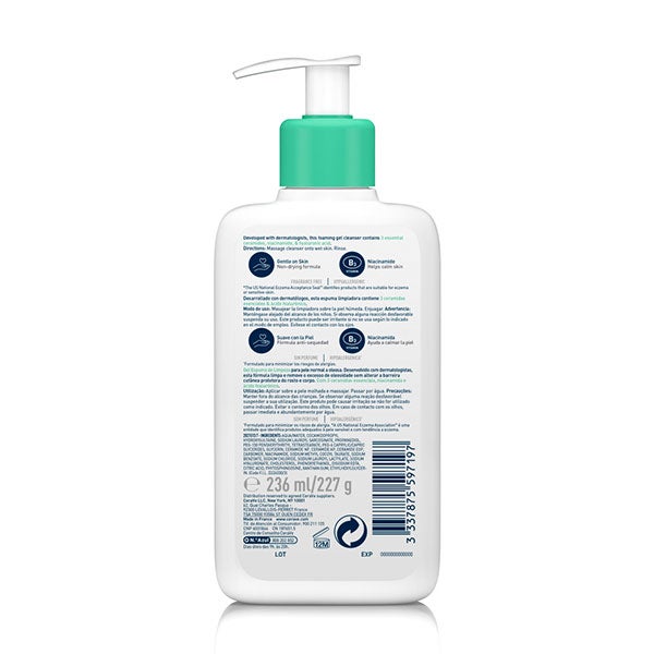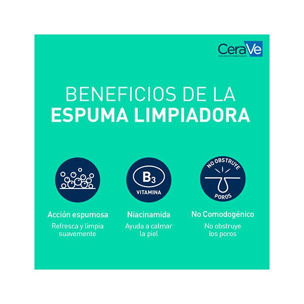 O Gel de Limpeza espumante da CeraVe cria espuma suave para limpar profundamente o rosto e o corpo, sem alterar a barreira natural da pele.