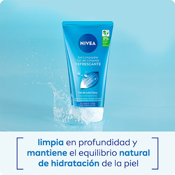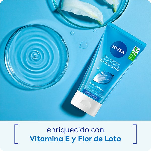 NIVEA Gel Limpiador Refrescante está enriquecido com Flor de Lótus, Vitamina E e Hydramine, um ingrediente conhecido por reter eficazmente a hidratação na pele. Especialmente desenvolvido para peles normais e mistas, não só limpa profundamente eliminando as impurezas diárias, mas também tonifica e refresca a pele a cada uso.