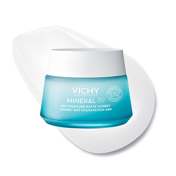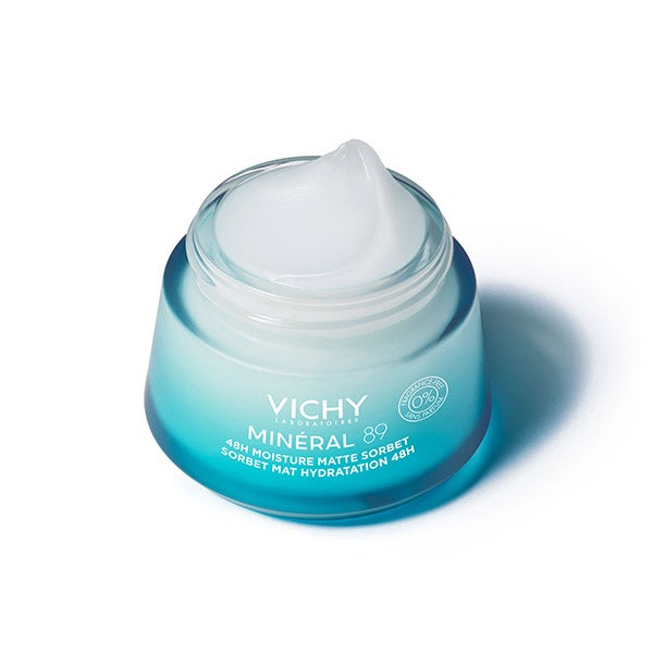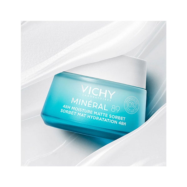 Minéral 89 Gel Sorbet Mate Hidratante 48H proporciona uma hidratação duradoura com uma sensação refrescante e leve na pele.