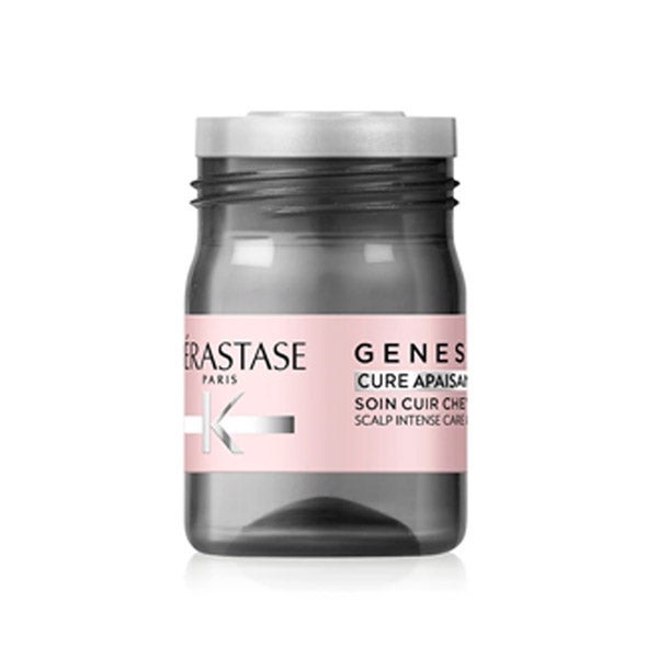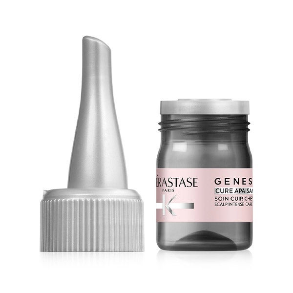 Kérastase Genesis Cure Apaisante Anti-Inconforts é um tratamento intensivo de 4 semanas projetado para acalmar e proteger o couro cabeludo sensível. Atua reduzindo desconfortos como coceira, irritação e inflamação, restaurando a qualidade e elasticidade do couro cabeludo.