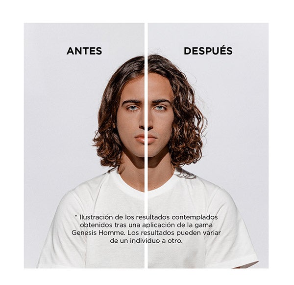 ***Teste clínico em 99 pessoas após o uso de Serum Fortifiant por 6 semanas. COMO FUNCIONA GENESIS HOMME? Uma dupla ação para o cliente: Instantaneamente: FORTALECE E ENGROSSA A FIBRA DO CABELO graças às raízes de gengibre, creatina e polímeros expansivos. A longo prazo: AJUDA A REDUZIR A QUEDA DE CABELO, FORTALECENDO SUA FIXAÇÃO E RETENÇÃO graças ao Aminexil.
