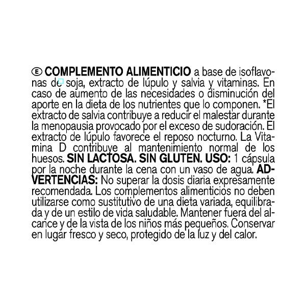 Suplemento alimentar com isoflavonas de soja, extrato de lúpulo, sálvia e vitaminas.