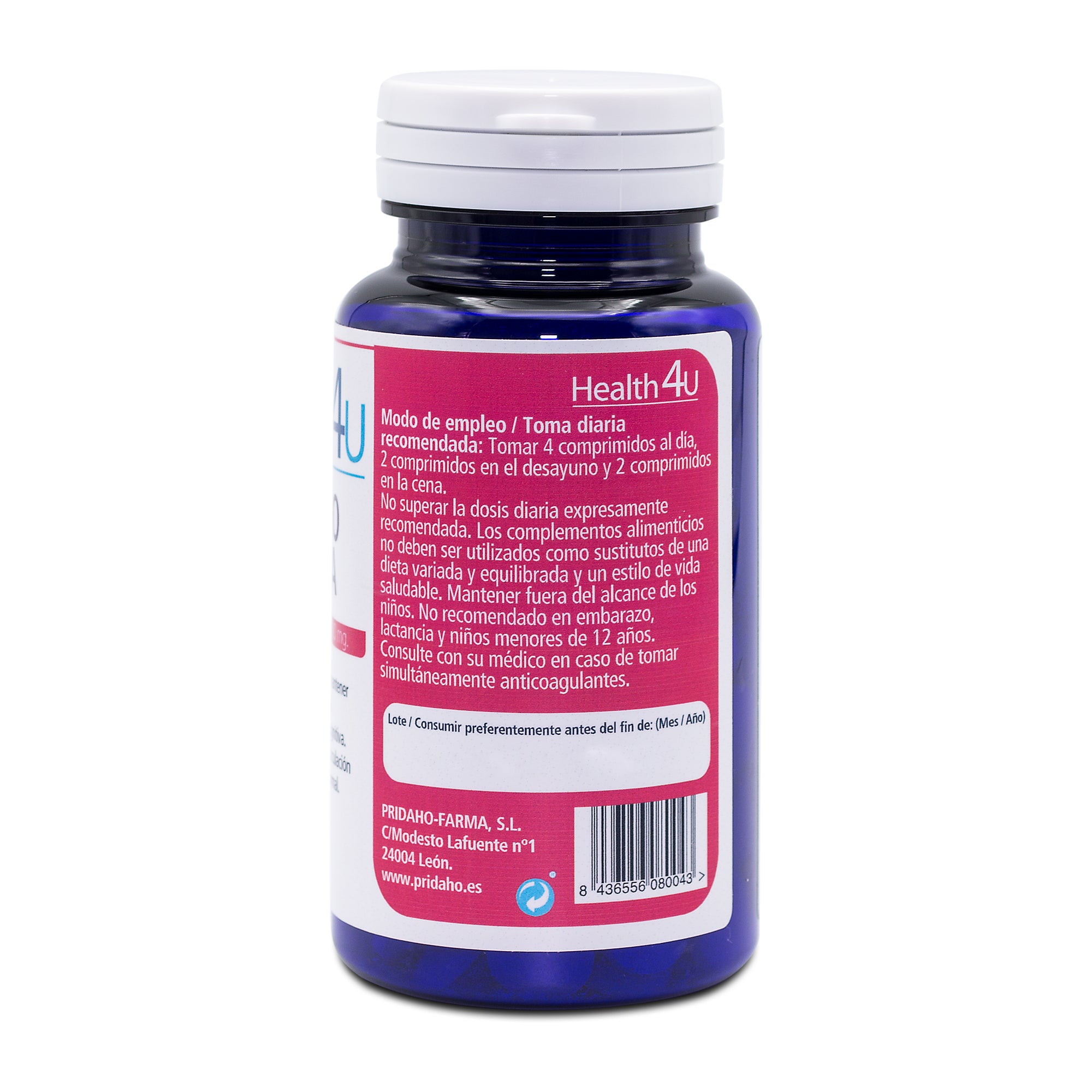 Ingestão diária recomendada: tomar 4 comprimidos ao dia, 2 comprimidos no café da manhã e 2 comprimidos no jantar.