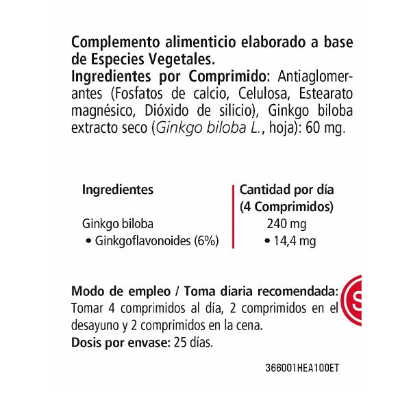 Ingredientes (1 cápsula) Ginkgo Biloba extracto seco 90mg, glucósidos flavonoides (24%) 21,6 mg, lactonas terpénicas (6%) 5,4 mg.