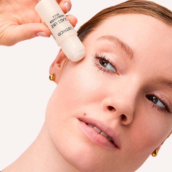 Deslize o stick diretamente sobre os pontos altos do rosto: maçãs do rosto, sobrancelhas, ponte do nariz e arco do cupido. Misture suavemente com as pontas dos dedos para obter um brilho natural e uniforme. Para um efeito mais intenso, aplique em camadas. Perfeito para um visual radiante diário ou para um look com um toque de frescor.
