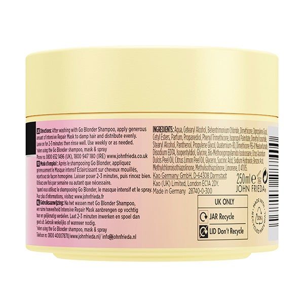 Depois de ter aplicado o Shampoo Clareador Go Blonder, aplicar a Máscara Clareadora com Limão no cabelo úmido.