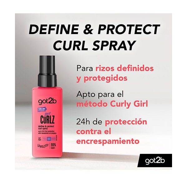 O Spray Curlz Define & Protect Got2b oferece proteção de até 24h contra o frizz e perfeita definição dos cachos.