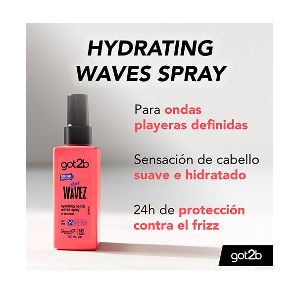 O Spray Wavez Hydrating beach Gotb2 proporciona um look natural de ondas praianas sem ressecar o cabelo. Sensação de suavidade e hidratação.