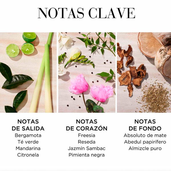 Elaborada com ingredientes veganos e de origem ecológica, a fragrância se abre com fresia de aroma doce e fresco, que floresce sobre flores de mignonette, jasmim sambac e essência de bergamota. O absoluto de mate, o bétula branca e o almíscar realçam a harmonia floral e criam um reconfortante equilíbrio de frescor e especiarias que desperta os sentidos.