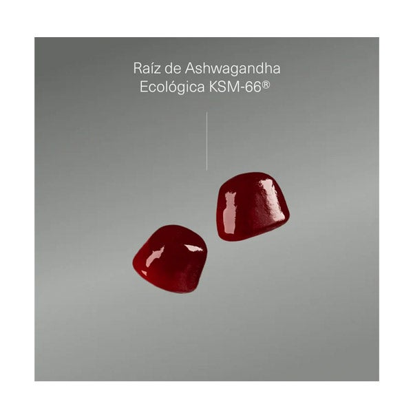 Jarabe de glucosa, azúcar, agua, extracto seco de raíz de ashwagandha (Withania somnifera (L.) Dunal) 5 % de withanólidos, gelificante (pectina), acidulante (ácido cítrico), colorante (antocianinas), aromas naturales, regulador de la acidez (citrato trisódico), aceite de coco, antiaglomerante (cera de carnauba).