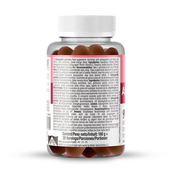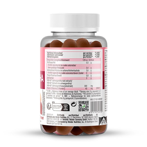 Edulcorantes: maltitol, sorbitol; extracto de ashwagandha (Withania somnifera; raiz), gelificante: pectina; vitamina C (ácido L-ascórbico), aroma, acidulante: ácido cítrico; agua, agente de recubrimiento: cera carnauba.