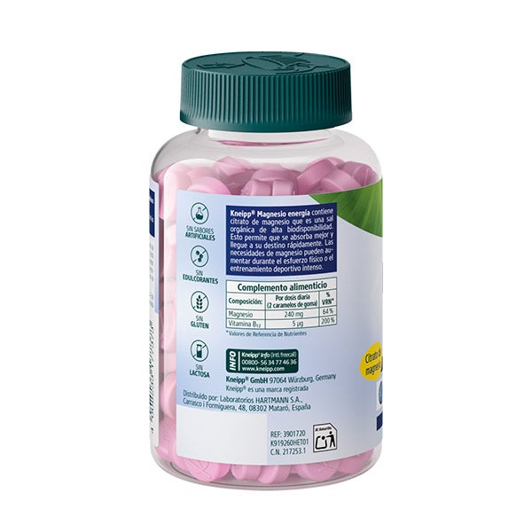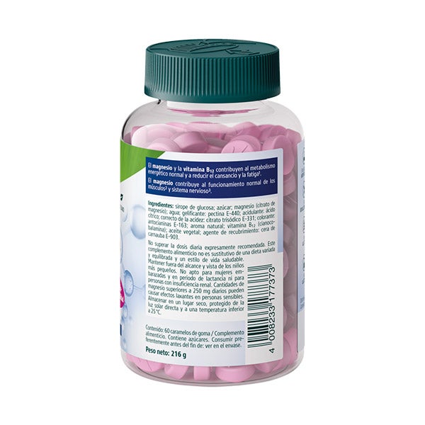 Sirope de glucosa; azúcar; magnesio (citrato de magnesio); agua; gelificante: pectina E-440; acidulante: ácido cítrico; corrector de la acidez: citrato trisódico E-331; colorante: concentrados de zanahoria y arándano; aroma natural; vitamina B12 (cianocobalamina); aceite vegetal; agente de recubrimiento: cera de carnauba E-903.