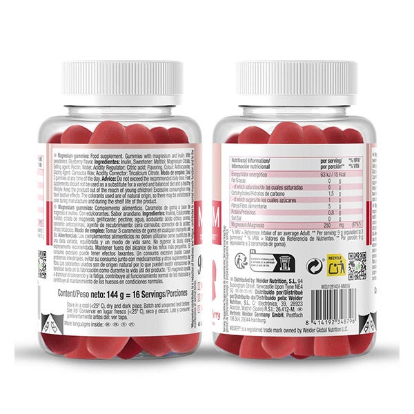 Com apenas três gomas por dia, você obterá 250 mg de magnésio que fornecerão dois terços das necessidades diárias deste mineral essencial. Além disso, nossas gomas são perfeitas para qualquer consumidor graças ao seu delicioso sabor a mirtilo e não contêm glúten nem açúcares adicionados.
