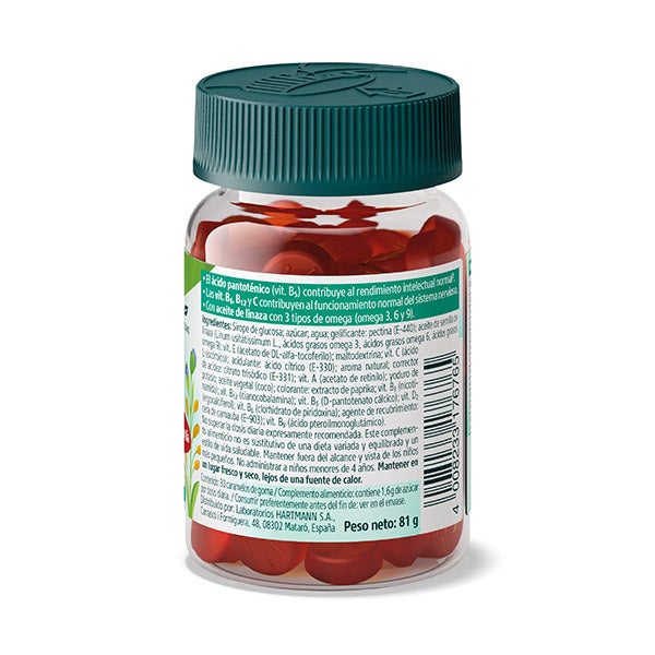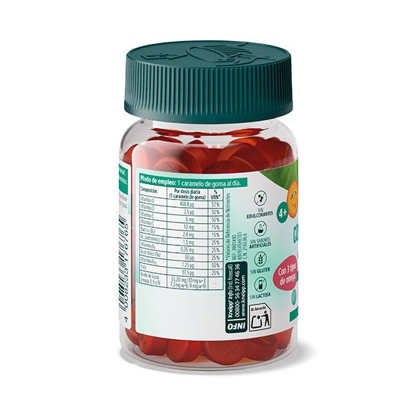 Kneipp Gummies Crianças Concentração melhora o desempenho intelectual com vitamina B5, apoia o sistema nervoso com vitaminas B6, B12 e C, e fornece ômega 3, 6 e 9 com óleo de linhaça.