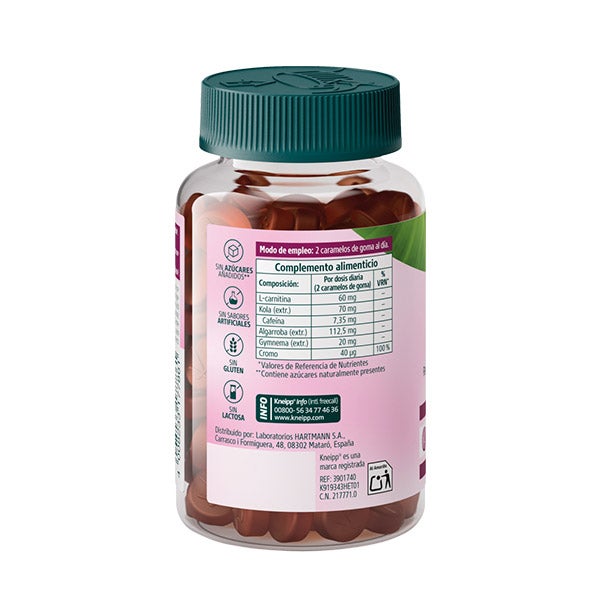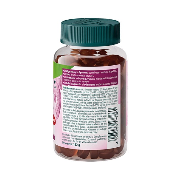 Edulcorantes: sirope de maltitol (E-965ii), sirope de sorbitol (E-420ii); gelificante: pectina (E-440); extracto de fruto de algarrobo (Ceratonia siliqua); edulcorante: sorbitol (E-420i); acidulante: ácido cítrico (E-330); extracto de semillas de kola (Cola nitida); extracto de hojas de gymnema (Gymnema sylvestre); cromo (picolinato de cromo); aroma natural; colorante: extracto de paprika (E-160c); corrector de la acidez: citrato trisódico (E-331); agente de recubrimiento: cera de carnauba (E-903).