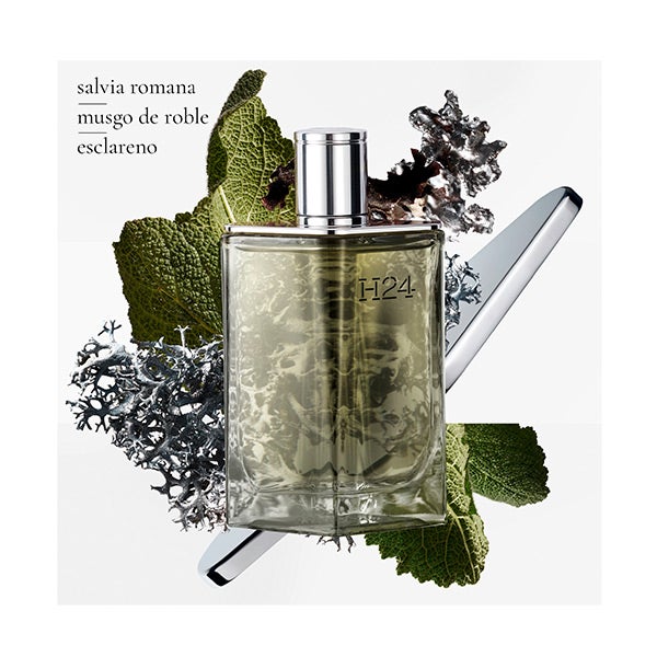 H24 Eau de parfum, aromático e amadeirado, baseia-se no generoso poder vegetal da envolvente sálvia, no denso musgo de alta tecnologia e no cálido e vibrante esclareno.