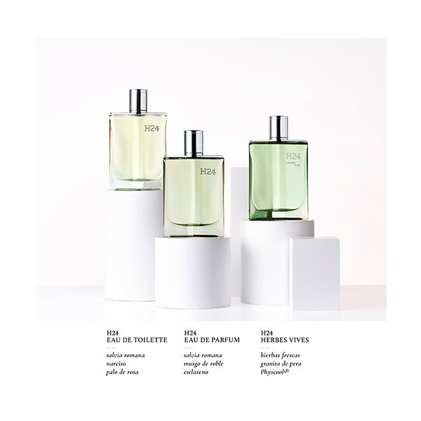 H24, o novo selo perfumado de Hermès. H de Hermès, H de Humano, H de Horas e 24, um número que expressa uma relação com o tempo e que sublinha a ligação com a casa, localizada no número 24, rue du Faubourg Saint-Honoré. H24 é uma forma de expressão do mundo em movimento e do homem contemporâneo no mundo.
