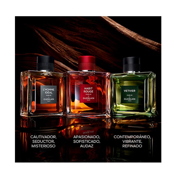Inspirado no caráter intenso e quente de um bourbon, Habit Rouge Le Parfum evoca a tonalidade de um acorde de rum. É uma introdução ideal à tintura de baunilha, criada pelo processo interno da Guerlain. Esta tintura de baunilha, acompanhada de patchouli, confere à assinatura Habit Rouge uma profundidade inédita.