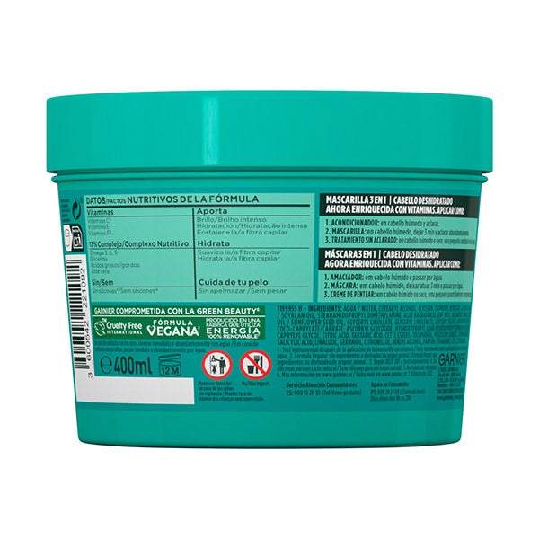Aplique no cabelo úmido, deixe por 3 min. e depois enxágue abundantemente para hidratar completamente o cabelo sem pesar.