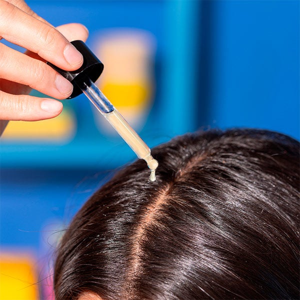 - Todas as noites, antes de dormir, encha uma pipeta inteira (1 ml) e distribua-a em forma de gotas por diferentes pontos do seu couro cabeludo, separando o cabelo para que as gotas penetrem no folículo capilar.